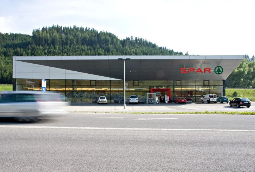 New construction of a grocer’s shop as a land mark next to the highway exit Mürzzuschlag-Ost of the S 6 Semmering expressway. Development of a master plan for a small retail center.